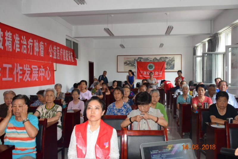 为了进一步落实宁夏统一战线“助力脱贫攻坚”暨医疗健康扶贫行动,2018年8月14日炎炎夏日,应银川市兴庆区燕乐园社区邀请,宁夏信义公益社会工作发展中心公益医疗志愿者留美医学博士周炳刚一行来到银川市石油城燕乐园社区中心,为社区居民科普讲解肿瘤预防和微波消融精准治疗肿瘤的先进理念和知识。